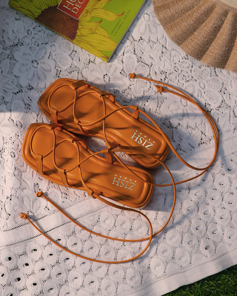 Experience a blend of nostalgia and contemporary flair with our Platform Tie ups flats. Made from sustainable materials, these platform sandals boast a subtle 1-inch sole, achieving an ideal blend of retro allure and modern aesthetics. With an anti-slip sole and stylish tie-up accents, they offer both comfort and trendiness. Elevate your ensemble effortlessly with the gentle, supportive tieup straps, injecting a hint of vintage charm into your style.